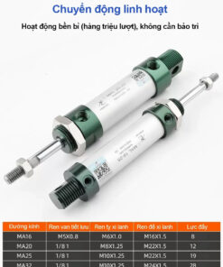 - Thiết kế nhỏ gọn: Sản phẩm có thiết kế nhỏ gọn, tiết kiệm không gian lắp đặt. Điều này giúp chúng trở nên lý tưởng cho các ứng dụng có không gian hạn chế hoặc cần nhiều xi lanh trong một hệ thống.