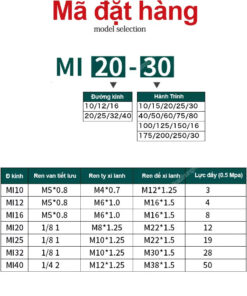 - Đường kính piston: Từ Φ8mm – Φ63mm