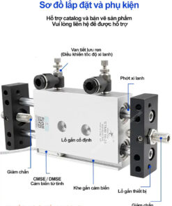 - Thiết kế nhỏ gọn: Sản phẩm có thiết kế nhỏ gọn, tiết kiệm không gian lắp đặt. Điều này giúp chúng trở nên lý tưởng cho các ứng dụng có không gian hạn chế hoặc cần nhiều xi lanh trong một hệ thống.