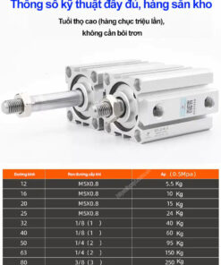 - Giá thành hợp lý: So với các loại xi lanh khí nén khác có cùng khả năng chịu tải và độ chính xác, sản phẩm có giá thành hợp lý hơn. Đây là một yếu tố quan trọng cần cân nhắc khi lựa chọn xi lanh cho các ứng dụng có ngân sách hạn chế.