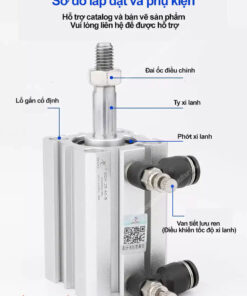 - Thiết kế nhỏ gọn: Sản phẩm có thiết kế nhỏ gọn, tiết kiệm không gian lắp đặt. Điều này giúp chúng trở nên lý tưởng cho các ứng dụng có không gian hạn chế hoặc cần nhiều xi lanh trong một hệ thống.