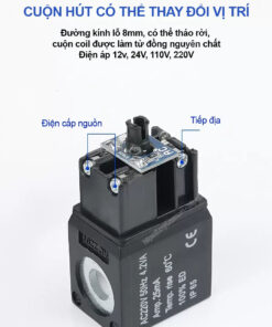 - Điện áp: 12v, 24V, 110V, 220V, tác động khí nén, van cơ