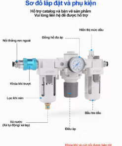 - Chức năng chính bộ tách nước khí nén Tách nước – chĩnh áp nước – bôi trơn dầu
