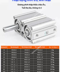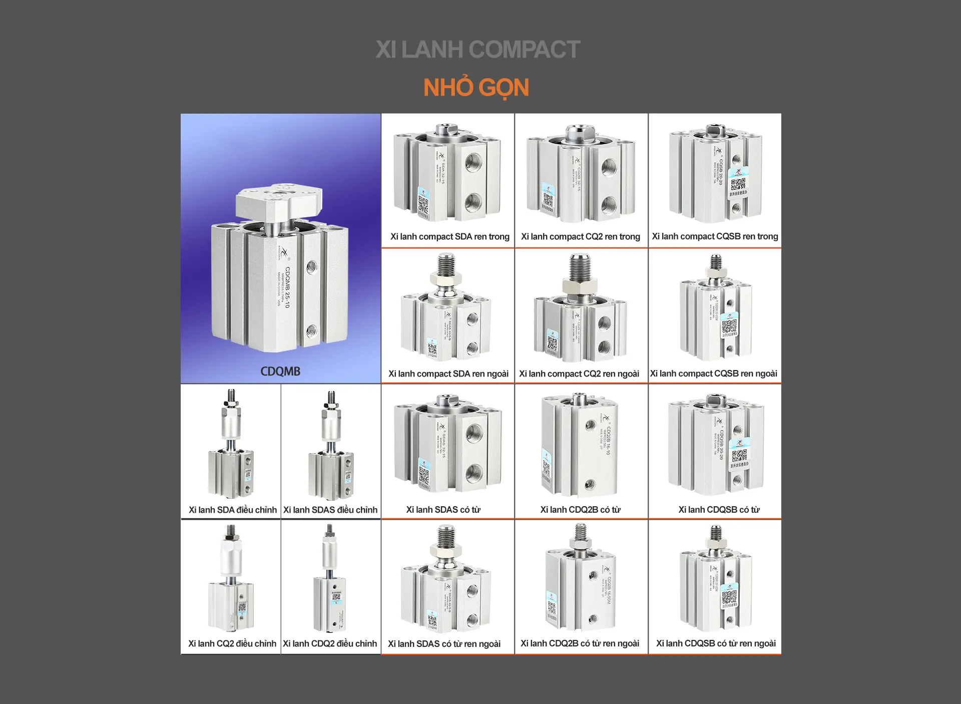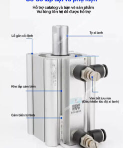 - Thiết kế nhỏ gọn: Sản phẩm có thiết kế nhỏ gọn, tiết kiệm không gian lắp đặt. Điều này giúp chúng trở nên lý tưởng cho các ứng dụng có không gian hạn chế hoặc cần nhiều xi lanh trong một hệ thống.