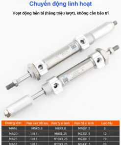 - Thiết kế nhỏ gọn: Sản phẩm có thiết kế nhỏ gọn, tiết kiệm không gian lắp đặt. Điều này giúp chúng trở nên lý tưởng cho các ứng dụng có không gian hạn chế hoặc cần nhiều xi lanh trong một hệ thống.