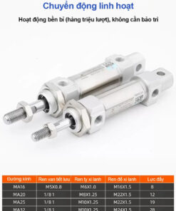 - Thiết kế nhỏ gọn: Sản phẩm có thiết kế nhỏ gọn, tiết kiệm không gian lắp đặt. Điều này giúp chúng trở nên lý tưởng cho các ứng dụng có không gian hạn chế hoặc cần nhiều xi lanh trong một hệ thống.